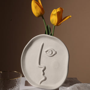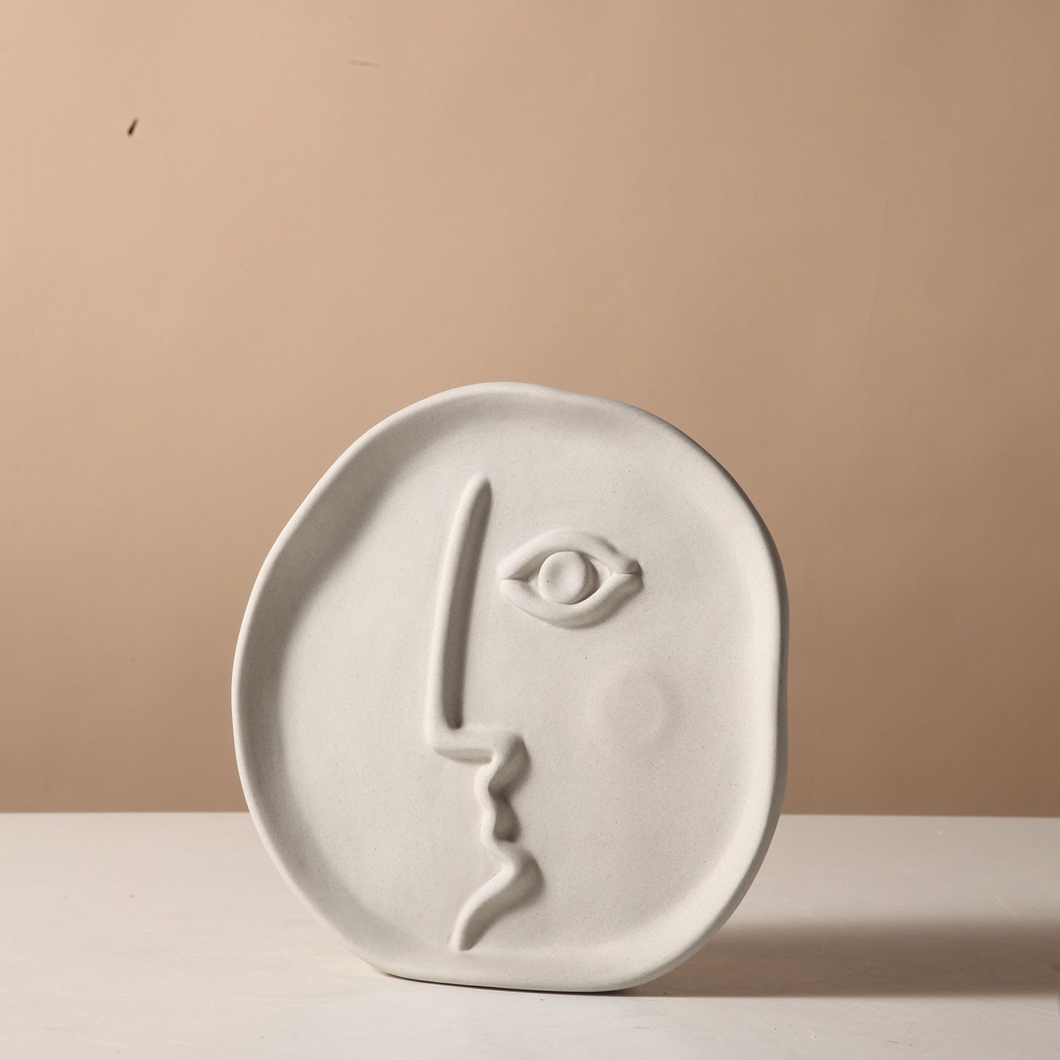 A modern decorative plate featuring an artistic embossed face design, perfect for adding a touch of contemporary elegance to any space.