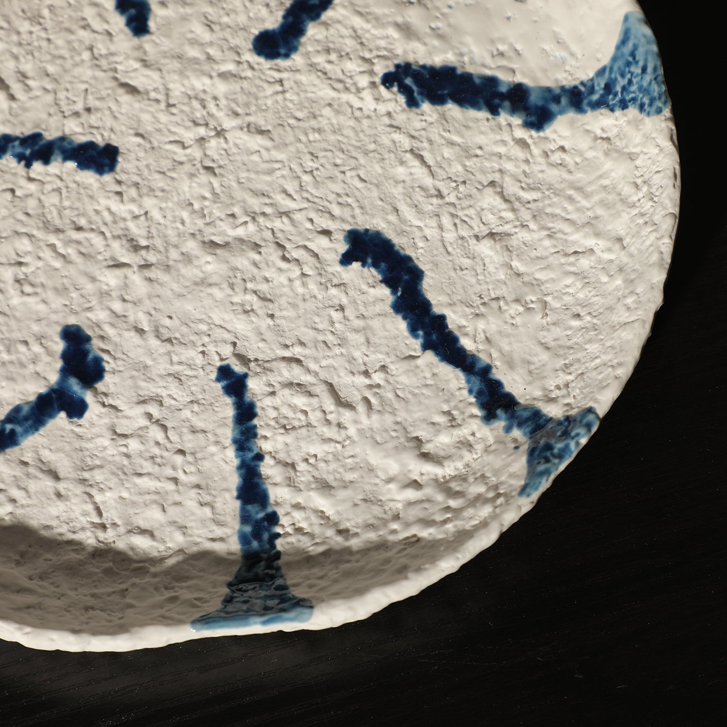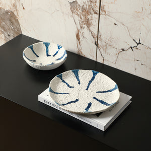 Handcrafted with a textured finish, the Azure Bloom Bowl features organic patterns in deep blue against a raw white base. Its artistic, nature-inspired design makes it a perfect statement piece for modern and rustic interiors alike.