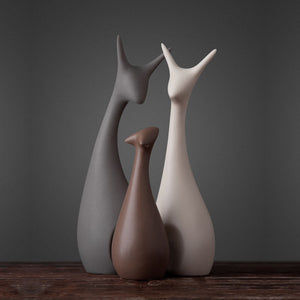 A trio of gracefully sculpted deer figurines in earthy tones, symbolizing harmony and family bonds. Perfect for adding a modern yet warm aesthetic to any space.