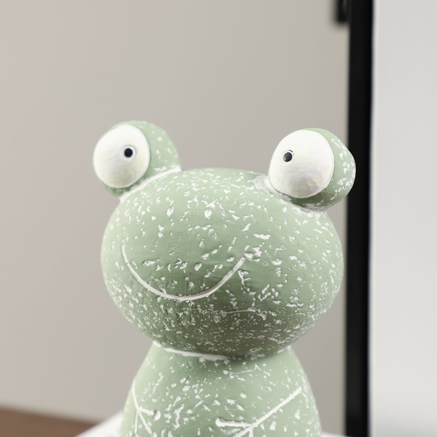 The Frolic Frog Figurine is a charming blend of whimsy and artistry, designed to bring joy and playfulness to any space. With its soft green hue, speckled white details resembling natural textures, and expressive googly eyes, this delightful piece captures the essence of a happy, carefree frog. Whether placed on a bookshelf, desk, or bedside table, it adds a cheerful, nature-inspired touch to your decor.