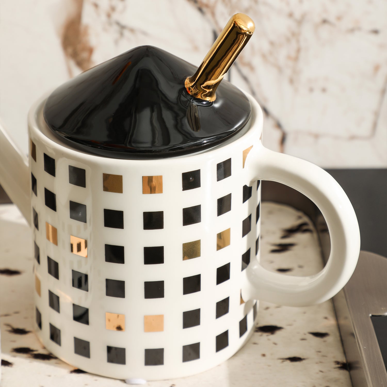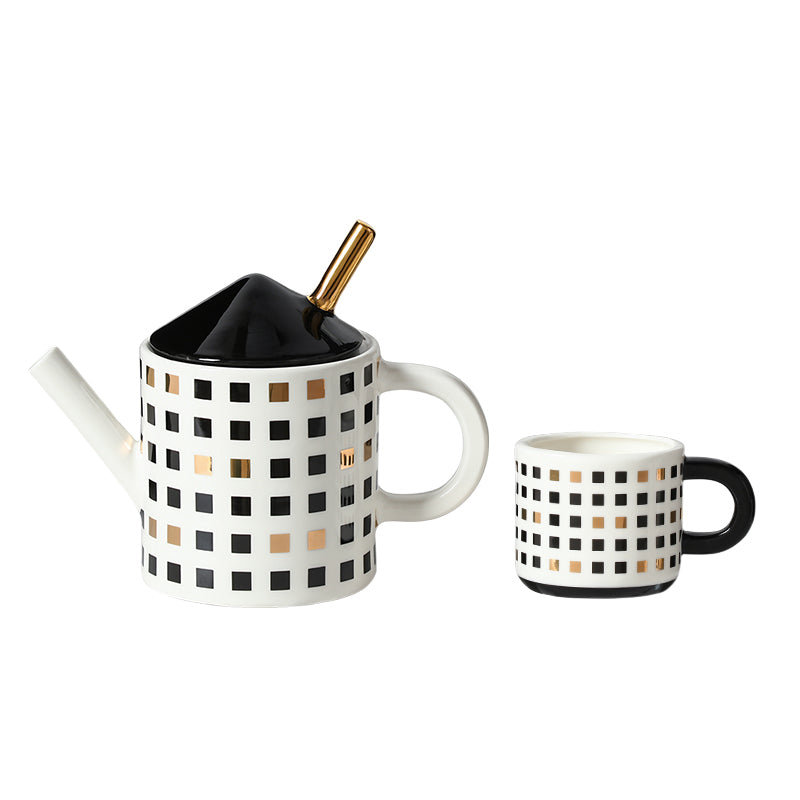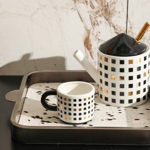 Grid Luxe Teapot (1 Pc) & Monochrome Chic Cups (Set of 6)