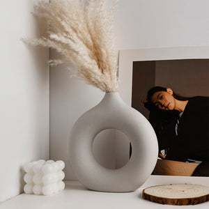 A minimalist ceramic vase with a distinctive hollow center, blending modern aesthetics with timeless elegance, ideal for stylish home decor.