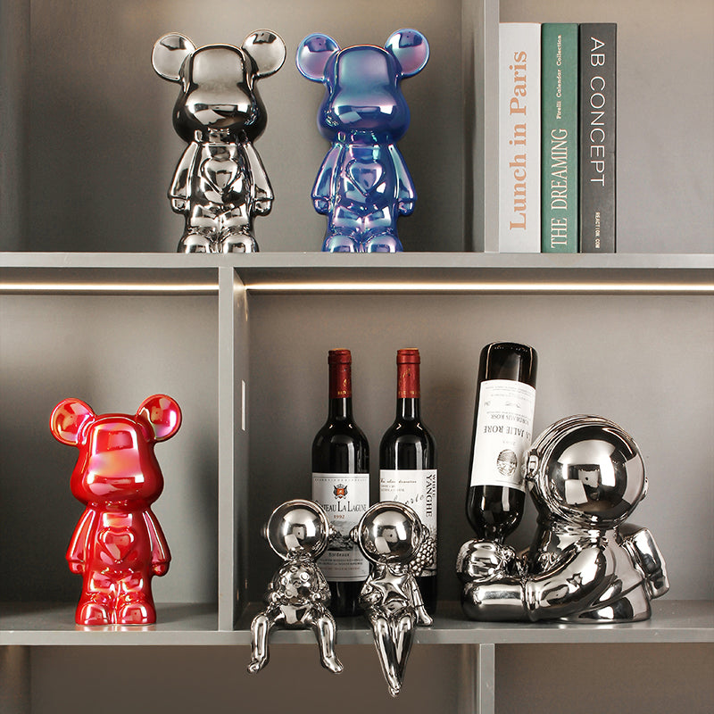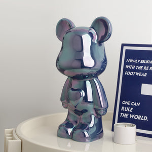 A striking ceramic bear figurine with a mesmerizing iridescent finish, reflecting shades of blue and purple for a modern and artistic appeal.