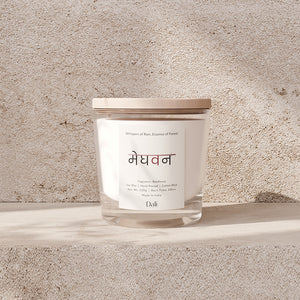 मेघवन brings alive the refreshing spirit of rainfall deep within a lush forest. With every spark of this candle, feel the cool mist, earthy woods, and green freshness surrounding you—like nature’s harmony captured in a flame.