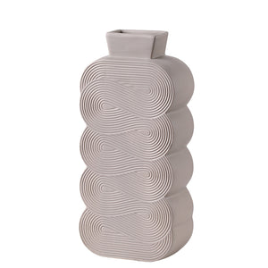 The Orbit Bloom Vase showcases a unique geometric silhouette adorned with mesmerizing concentric patterns. Its sculptural form, available in muted pastel tones, adds a touch of modern elegance, making it a statement piece for contemporary interiors.