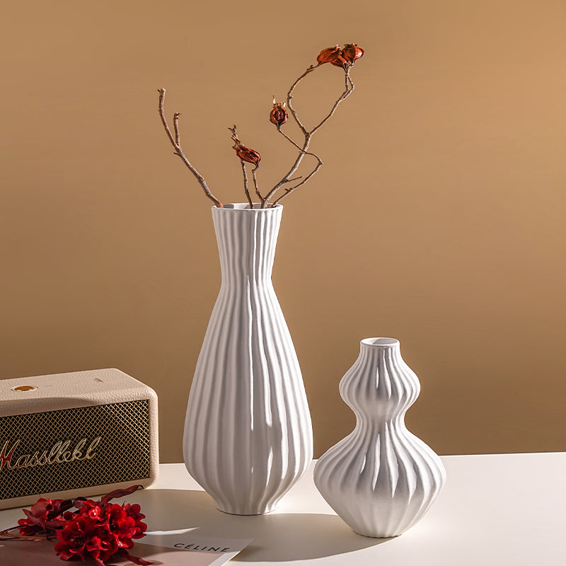 A delicate vintage-style vase in sandy pearl white, featuring an elegant ripple texture and graceful curves. Perfect for adding a touch of sophistication to any space.