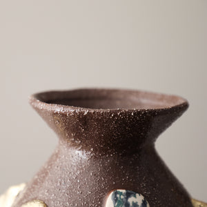 The Terra Relic Vase exudes an ancient charm, reminiscent of archaeological treasures unearthed from time-worn landscapes. Its textured earthen brown surface, adorned with organic gold and stone-like accents, gives it a raw yet luxurious appeal. Perfect for adding a rustic yet refined touch to contemporary or classic interiors, this vase stands as a statement piece that celebrates the beauty of imperfection and timeless artistry.