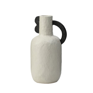 The Terra Textura Vase embodies raw, handcrafted beauty with its organic form and textured surface. Its earthy white tone and subtle brushstroke patterns evoke a sense of natural elegance, while the dark, curved handle adds a striking contrast. A perfect blend of modern minimalism and rustic charm, this vase enhances any space—whether used for dried florals or as a standalone decor piece.